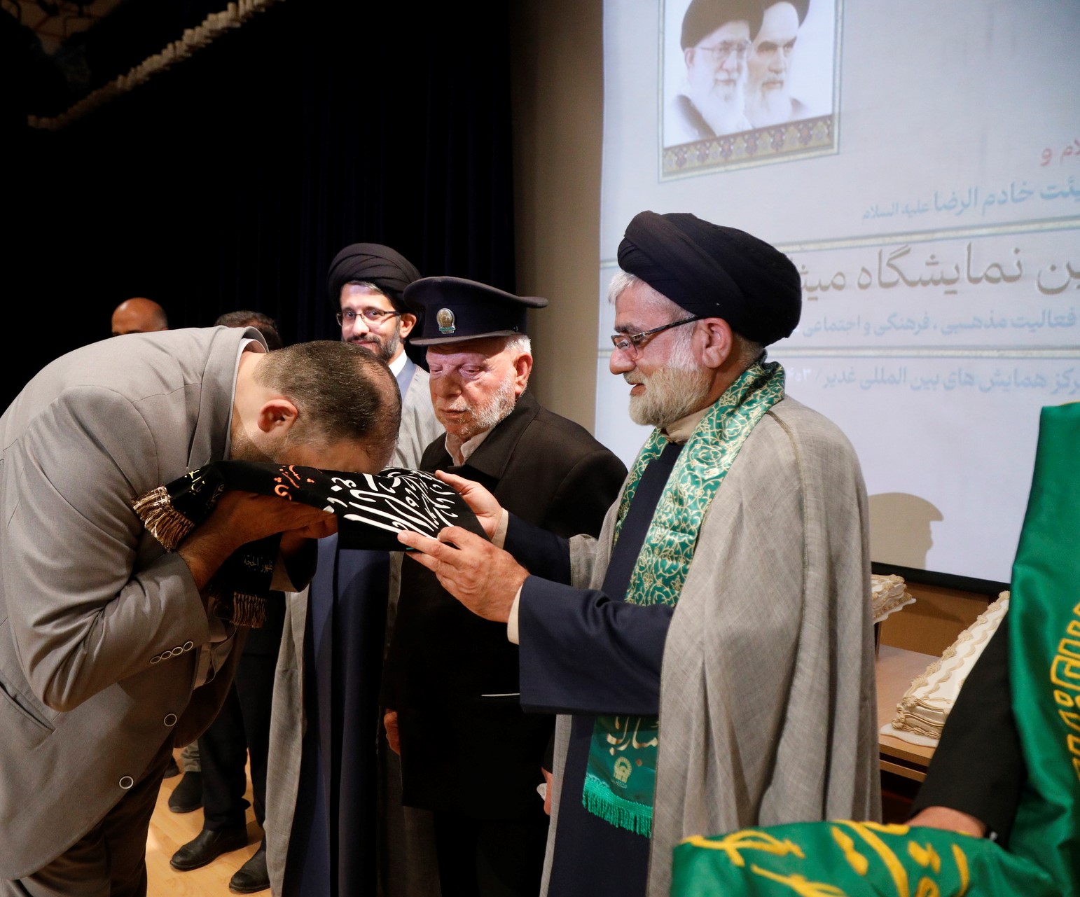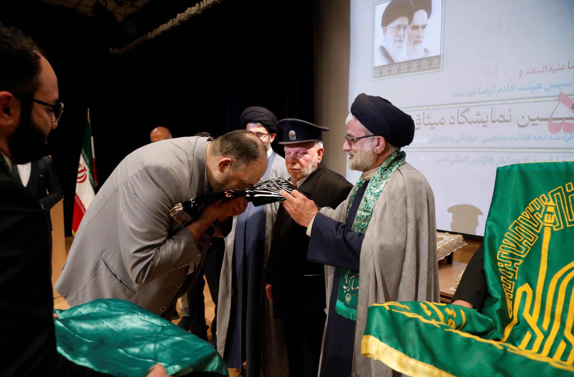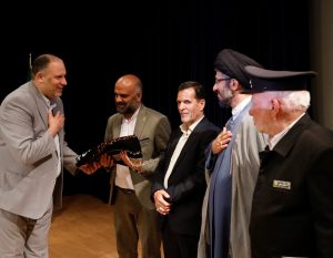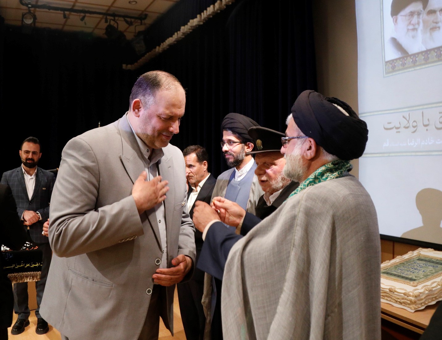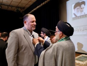 در جشن میلاد امام رضا علیه السلام توسط خادمین حرم علی بن موسی الرضا علیه السلام یک قطعه پرچم نصب شده در حرم و مدال افتخاری خادم الرضا علیه السلام به حمید ناطقی مسئول هیئت خادم الرضا علیه السلام قم اهدا گردید…