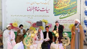 مراسم ازدواج چهل زائر اولی جوان استان خراسان جنوبی در آستانه فرا رسیدن میلاد با سعادت منجی عالم بشریت حضرت صاحب الزمان (عج) ویژه زوج‌های زائر اولی استان خراسان جنوبی مهمان شهر مقدس قم و با حضور اعضای هیئت خادم الرضا(ع) برگزار شد.