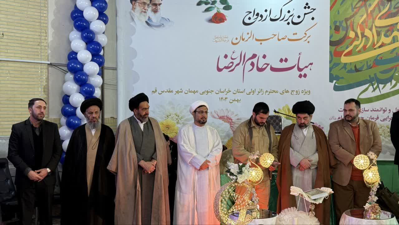 مراسم ازدواج چهل زائر اولی جوان استان خراسان جنوبی در آستانه فرا رسیدن میلاد با سعادت منجی عالم بشریت حضرت صاحب الزمان (عج) ویژه زوج‌های زائر اولی استان خراسان جنوبی مهمان شهر مقدس قم و با حضور اعضای هیئت خادم الرضا(ع) برگزار شد.
