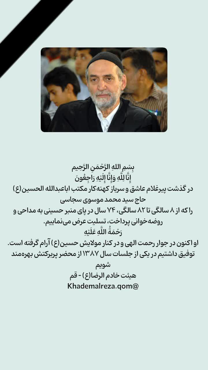 1404 تسلیت در گذشت مداح اهلبیت علیهم السلام حاج سید محمد موسوی سجاسی
